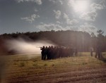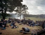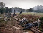 - Confederate reenactors fight from behind earthworks in Resaca, 2014