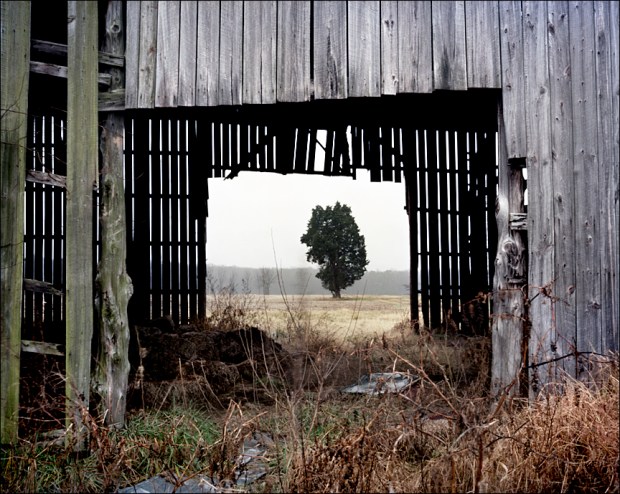 Old barn on the Slaughter Pen Farm looking toward the RF&P railroad and the Union line of advance in 1862. Fredericksburg, Va 2012
