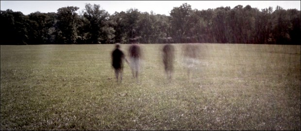 Battlefield visitors appears as ghosts as they walk across Duncan Field toward the Confederate battle line, opposite the Hornets Nest at Shiloh.