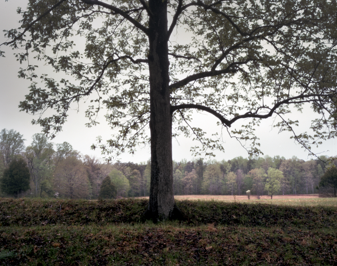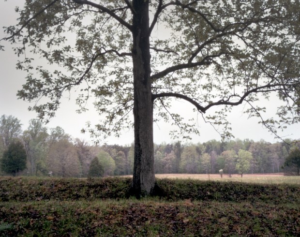 A tree grows from Confederate trenches that make up the Mule Shoe Salient at Spotsylvania.