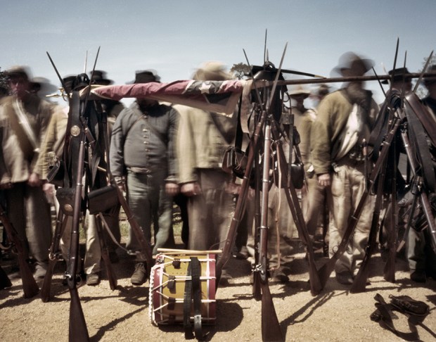 Stacked Arms and battle flags at Appomattox Court House, Va 2015