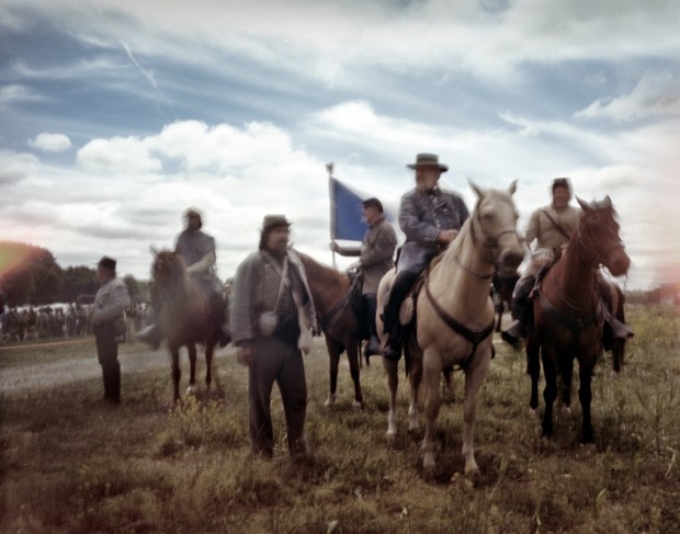 Robert E. Lee, aka, Jake Jennette and staff during a reenactment of the Battle of Chancellorsville in Spotsylvania County, Va 2013.