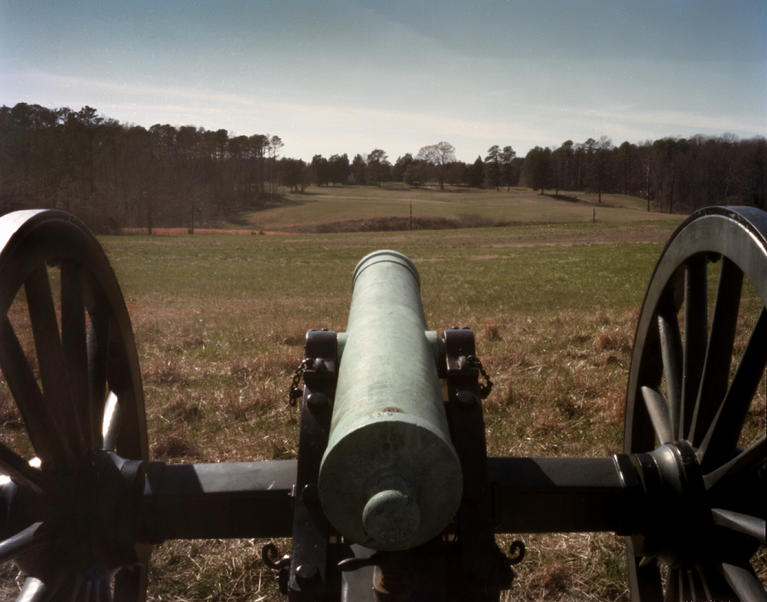 Union gun points toward the Confederate lines at Petersburg National Battlefield