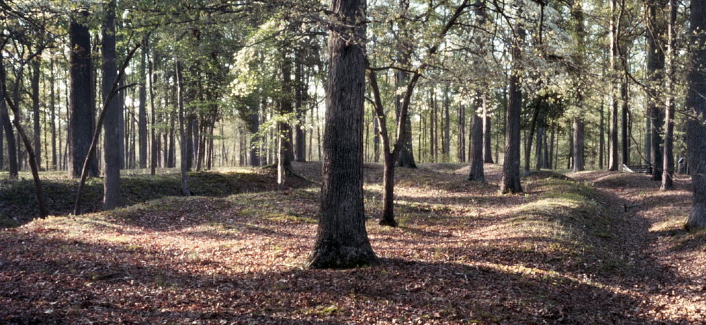 The Cold Harbor Battlefield, maintained by the National Park Service, is relatively small considering the fighting here, but a haunting battlefield space it is. Evidence of the elaborate confederate trench system is in plain sight now seen as ghostly mounds through the open forest landscape. One can walk across this battlefield space in just a few minutes but it is a moving experience.